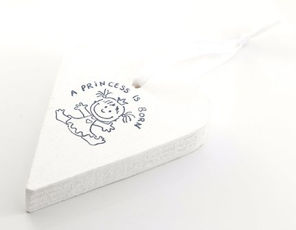 Verwelkom de geboorte van een prinses met onze betoverende houten hanger: 'A Princess is Born'. Dit hartvormige kunstwerkje is met liefde vervaardigd uit hout en toont een schattig meisje, symbool van de nieuwe prinses in je leven.