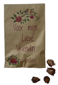 - Zakje met geluksklavers met de tekst Voor mijn lieve vriendin