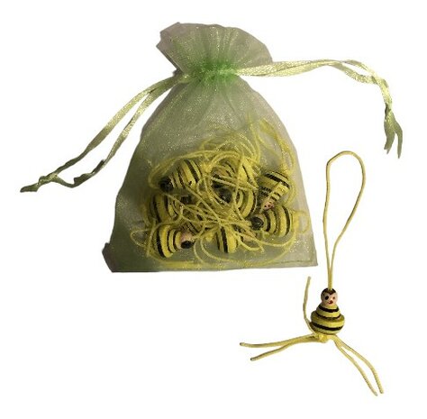 - Organza zakje gevuld met 10 bijtjes gelukshangers