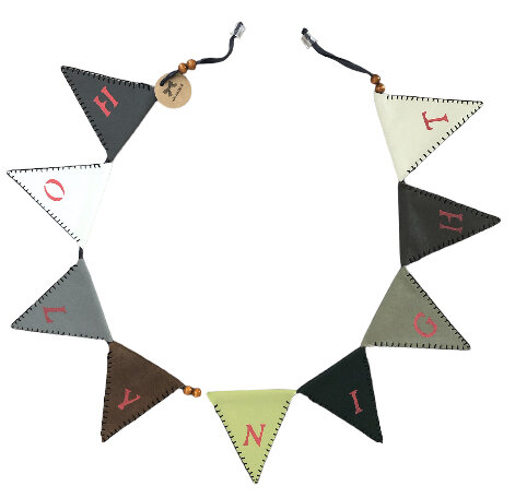 Creëer een warme en feestelijke sfeer met de Kerstslinger van leer "Holy Night". Deze handgemaakte kerstslinger is vervaardigd van echt leer en heeft vlaggetjes met een afmeting van 12 x 10 cm. Met een totale lengte van 124 cm en handige zuignappen voor eenvoudig ophangen, is deze kerstdecoratie de perfecte aanvulling op jouw feestversiering.