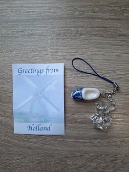 - Hanger in de vorm van een Delfts blauw klompje en kussend paartje