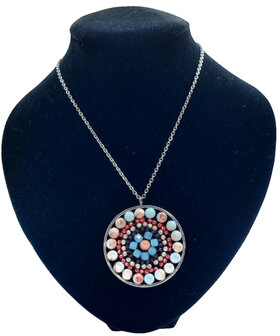 - De hanger is afgwerkt met kralen en natuursteen Larderiet