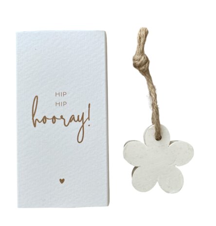 Verwen jezelf of een ander met ons bloemenzeepje "Hip Hip Hooray" in een stijlvol doosje. Dit zeepje, dat aan een koordje zit, heeft een afmeting van 4,5 x 4,5 cm (excl. koordje) en is perfect als cadeau voor verjaardagen. De verpakking heeft de feestelijke tekst: “Hip Hip Hooray”, waardoor het een ideale keuze is voor elke verjaardagsviering. De afmeting van het doosje is 11 x 5,5 cm, perfect om cadeau te geven of om jezelf te verwennen.
